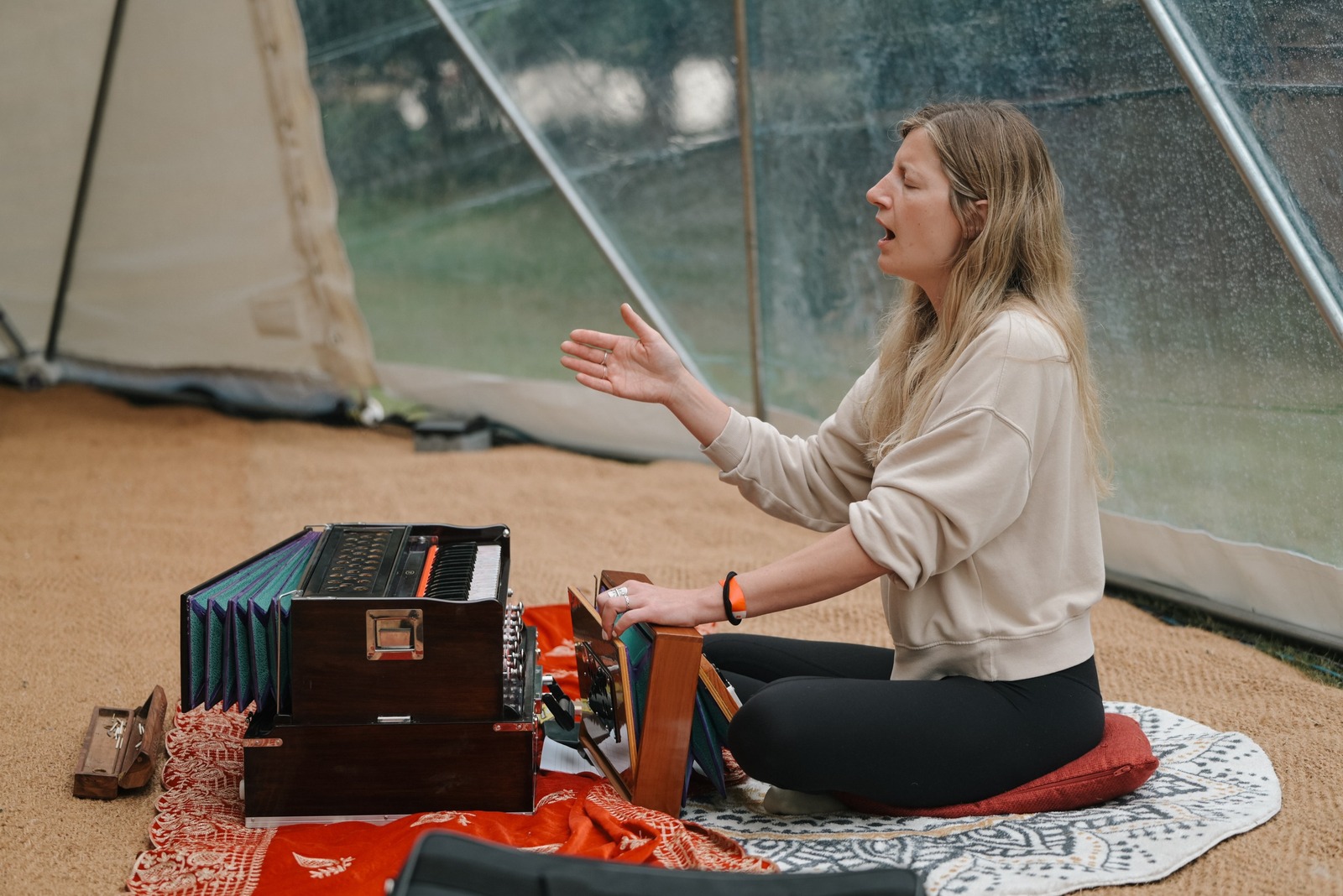 Workshops take place across two beautiful spaces: Zorba, our indoor workshop hall, and our marquee, plus outdoor sessions among ancient oak trees and spring blossoms when the weather allows.